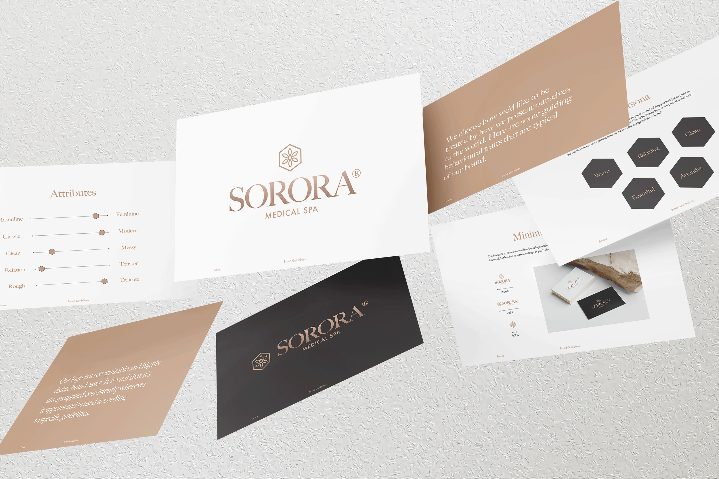 Once the logo was chosen, I worked on creating the company's branding guidelines: creating pages for the target audience, attributes, minimum logo sizes, breathing room, and the logo formula. I then solidified the primary, secondary, and tertiary logos for future use and created a variety of mockups across various applications to show the client their brand in action.
